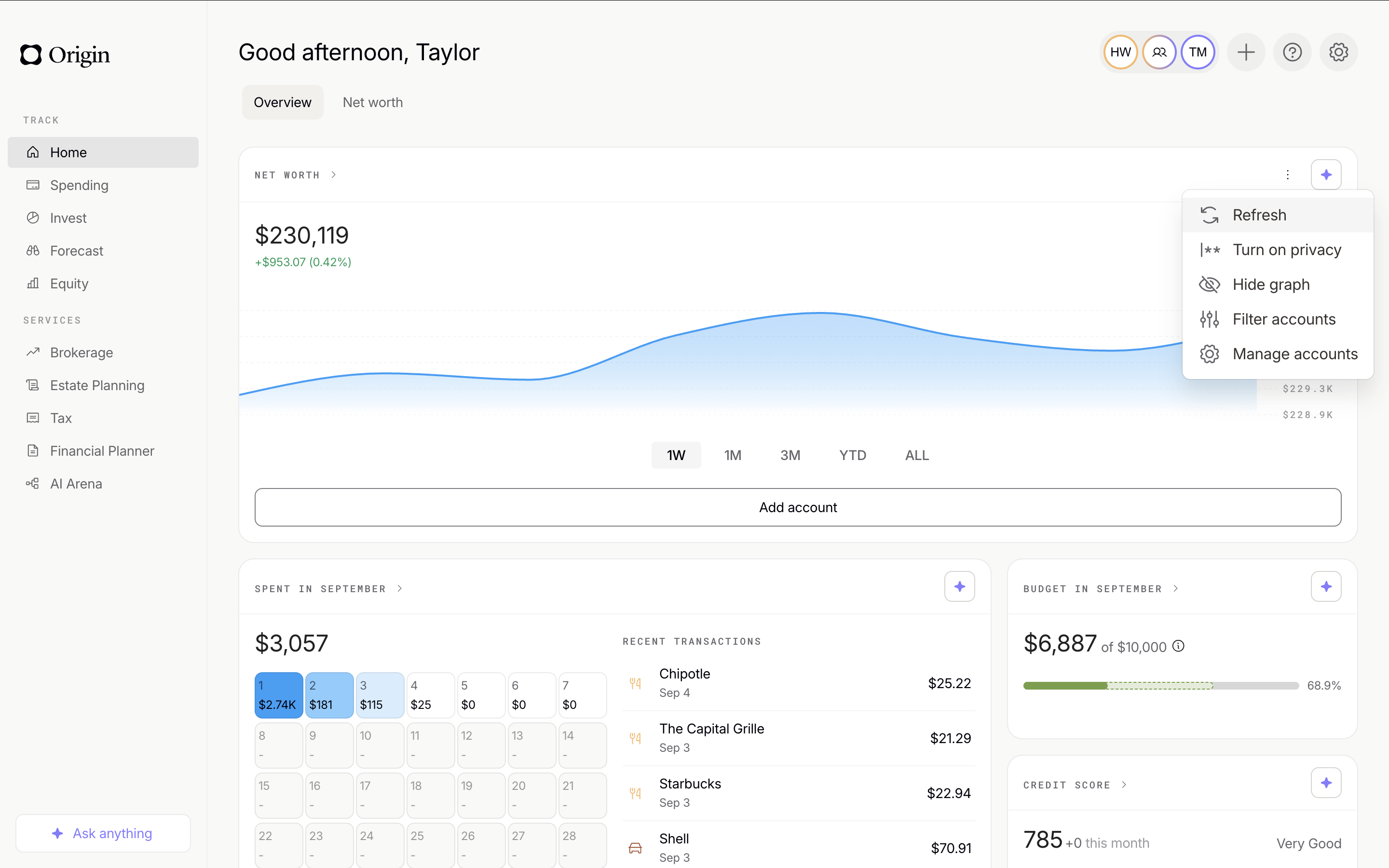 Refreshing your accounts ensures that every time you visit Origin, you’re seeing your most up-to-date financial information — including something as small as whether that cold brew you bought this morning put you over your coffee budget for the month. Luckily, refreshing your accounts is super easy.