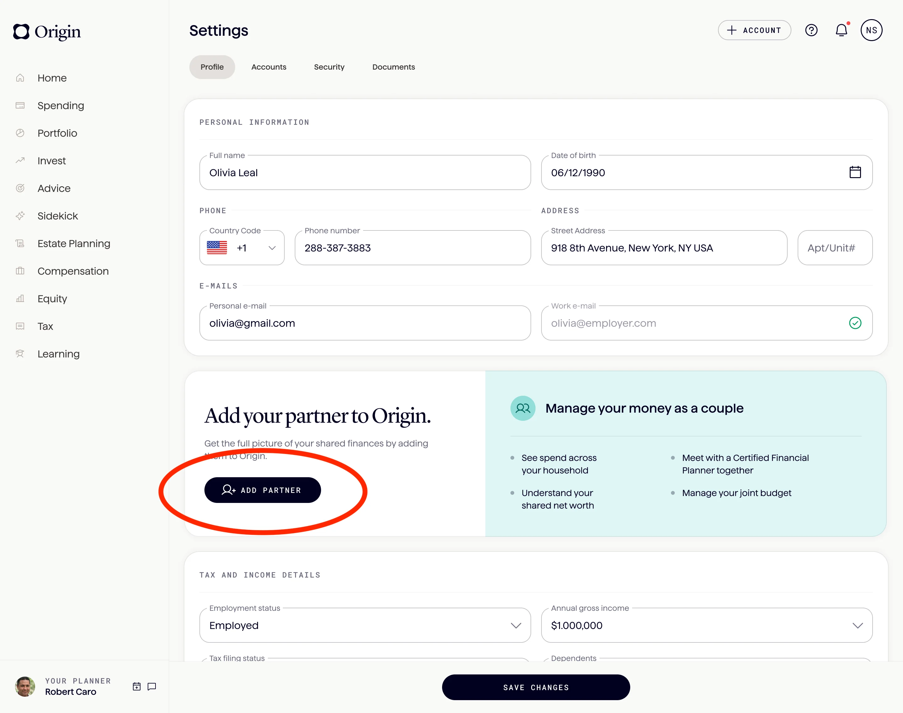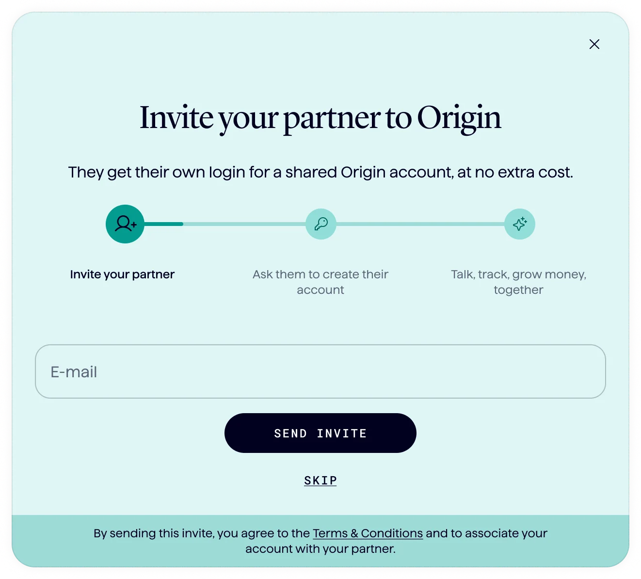 We get excited about every new feature we roll out here at Origin, but we’re especially proud to be debuting new and improved Partner Access features. These new capabilities give you and your partner a complete view into your individual and shared finances, giving you both all the information you need to stay on track and meet your joint financial goals.
