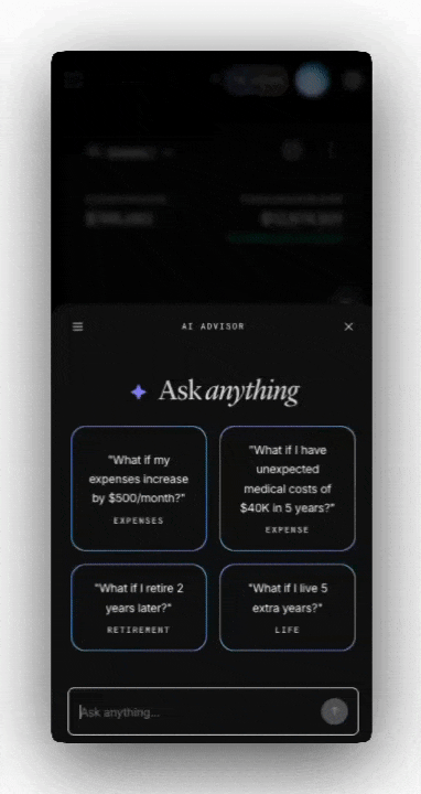 AI Advisor for Couples: Ask AI Advisor anything about you and your partner’s finances and get back context-aware answers grounded in your shared financial reality. Because AI Advisor understands both partners’ accounts, spending, goals, and trade-offs, answers are tailored to the household — not generic advice. Couples can explore “what if” questions together and get clear, data-backed guidance without needing separate tools or second opinions.